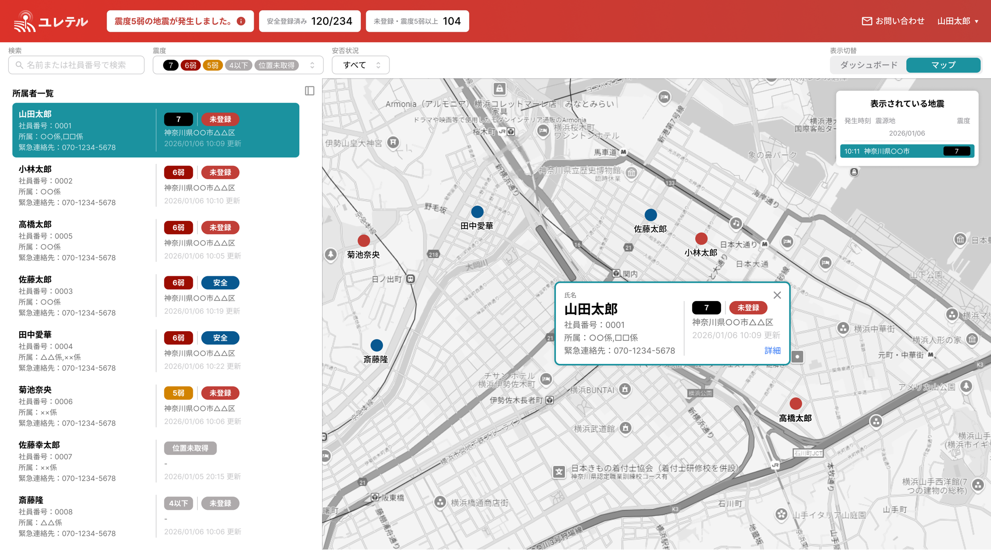 ■ 「ユレテル法人版」とは:地図上で一目瞭然の安否確認