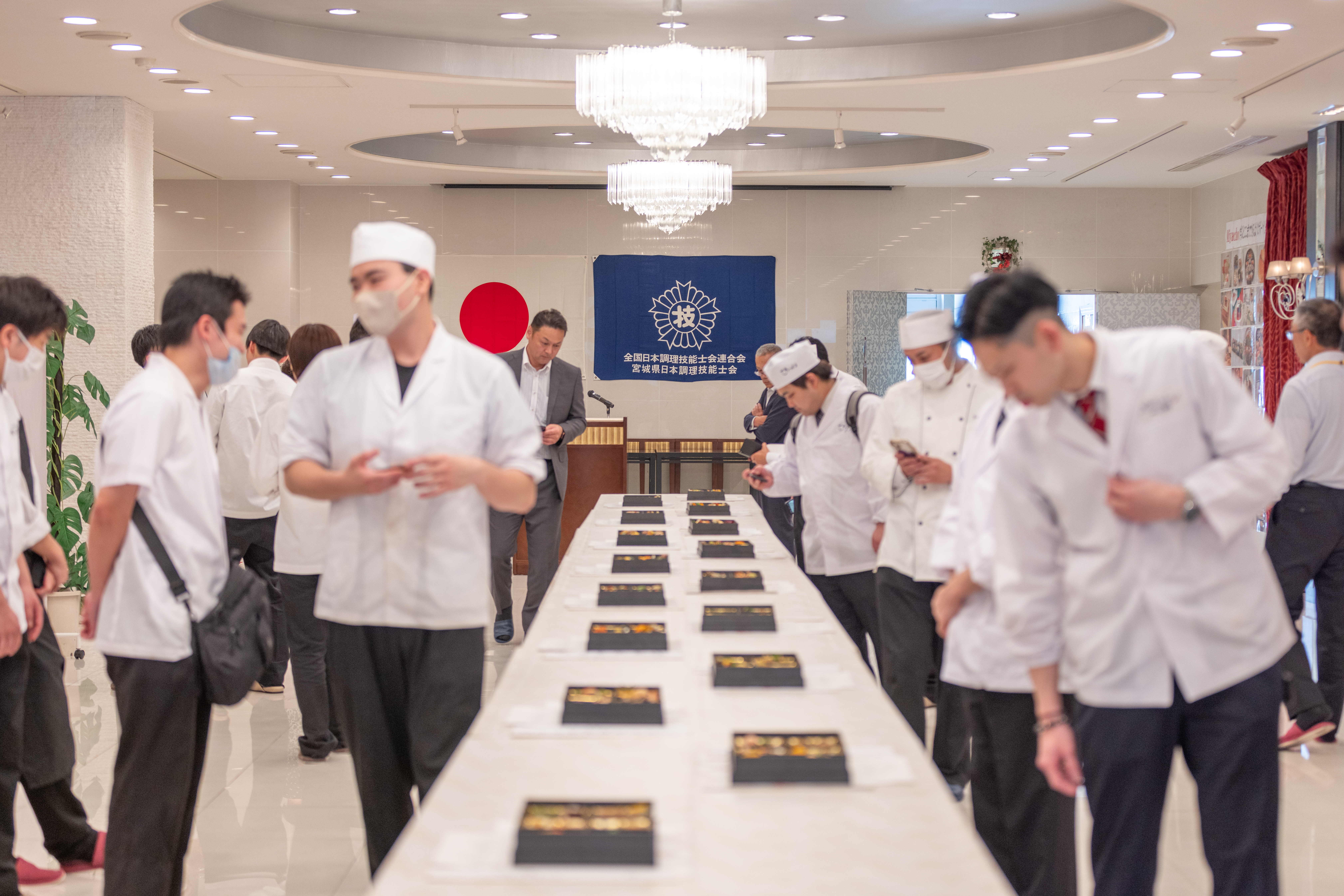 「宮城の名工」である、一の坊グループ柏原総料理長も「お弁当箱はお皿と比較すると深さがあるため、立体感も大切」「昨年よりコンテスト全体のレベルがあがっている」と評価していました。