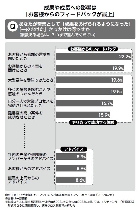 本書で高橋氏は、マネジャーのアドバイスの効果が薄れていると示し、その理由として、マネジャーがプレイヤーだった頃と現在とでは、状況や前提が大きく変わっていること、また2022年の調査(*1)からメンバーの成長のきっかけが、人からのアドバイスより、「お客様からのフィードバック」や「自分の力で成し遂げた達成体験」などが多かったことを挙げています。その上で、これからのマネジャーは、指導力向上に徹するよりも「皆で取り組む環境設計を土台に敷き、その上にマネジャーの指導力があるという考え方」にシフトチェンジすることで自走するチームを作れると断言。4万人への指導と2.2万人の調査から科学的に導き出した営業人材育成法と現代のマネジャーの役割を具体的に紹介しています。