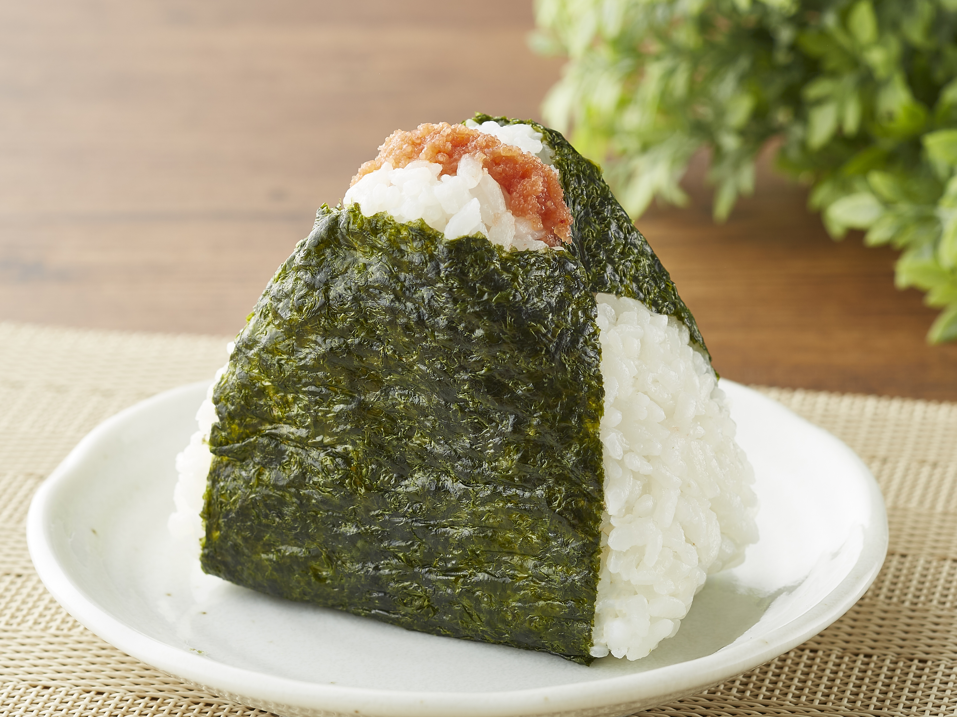 粒立ち良い、生漬けたらこと、羅臼産の昆布だしで辛味の中に旨みあり 味付けと製法にこだわった博多辛子明太子使用!!「手づくりおにぎり 博多辛子明太子」4月5日(金)新発売!!