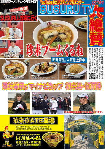 SNSや動画でも話題沸騰中!人気YouTubeチャンネル「SUSURU TV.」では、珍來の“あ、うまっ!!”なメニューが取り上げられ、紹介商品の注目度が急上昇。さらに、女子ゴルフ界の新星・桑村美穂選手のマイナビカップ初優勝を応援する企業としてもメディアで紹介されるなど、地域密着×進化する中華ブランドとして注目を集めています。
