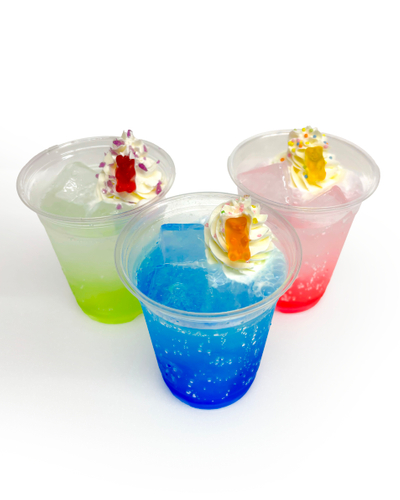 左 )さわやかグリーンアップルソーダ 中央)ブルーオーシャンソーダ 右 )トロピカルピーチソーダ