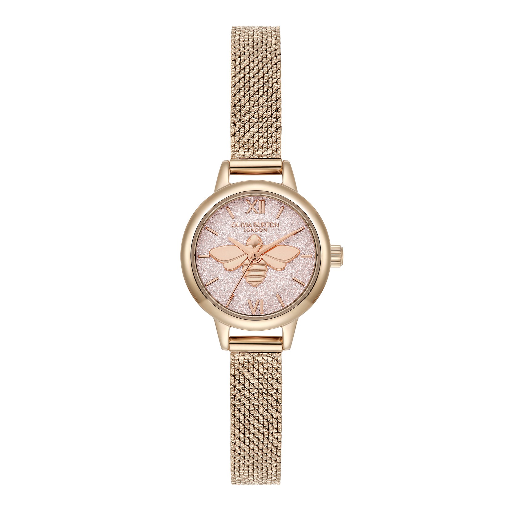 幸運を運ぶオリビア・バートンの象徴的な蜂モチーフが輝く「ラッキービー」コレクション。グリッターが美しく輝く文字盤に繊細なエッチングが施され、上品で華やかな存在感を放ちます。