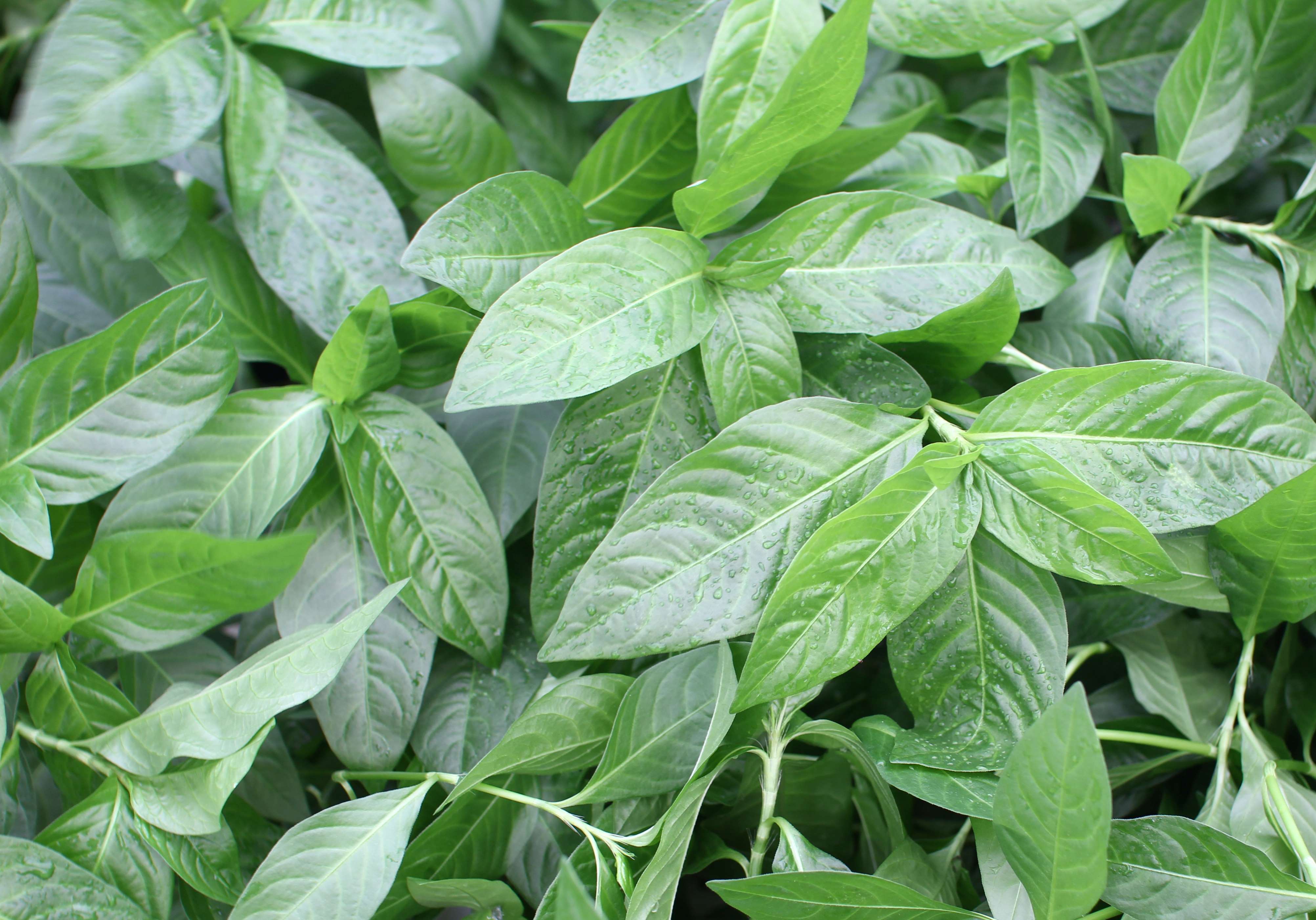 ジャパンブルーとも呼ばれる独特な青色の染料として知られている藍。昔から藍で染めたものを身に着けていると肌荒れや消臭に効果があるなどといわれ、衣類など身近なものに取り入れられてきました。また、食あたりや熱冷ましなどの民間薬としても利用されてきた植物です。近年では研究が進み、ポリフェノールやミネラルなどが豊富に含まれ、抗酸化力はブルーベリーの4倍以上もあることなどがわかっています。