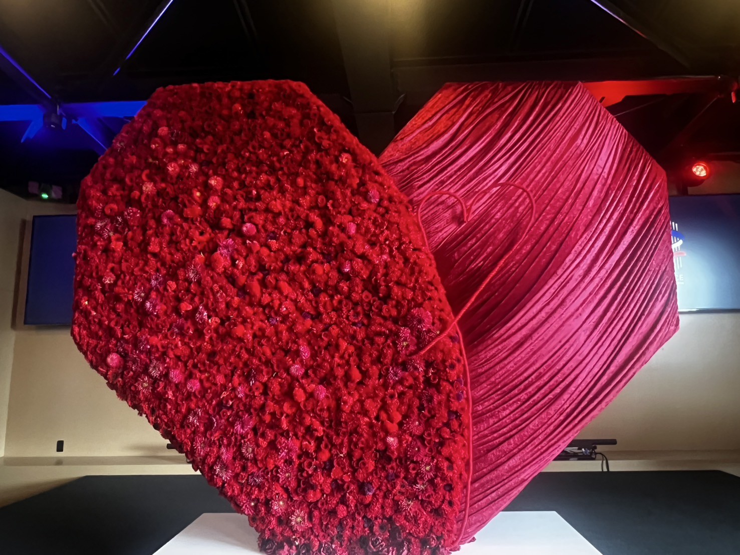 フラワーライフ振興協議会は2025年9月13日、大阪万博フランスパビリオンにて開催された「フランスナショナルデイ」に合わせ、花装飾の施工を担当しました。今回のデザインテーマは「赤い糸」。フランスパビリオンのコンセプト「愛の讃歌」に呼応する形で、愛とつながりを象徴する“赤い糸”をモチーフに、ジャパンフラワーグループ株式会社【ROSE GALLERY】ローズギャラリー Brand Director 武田桃子によるハートオブジェをデザイン、施工デザインをクリエイティブ・フラワー・コーポレーション株式会社、田村陽子が監修しました。