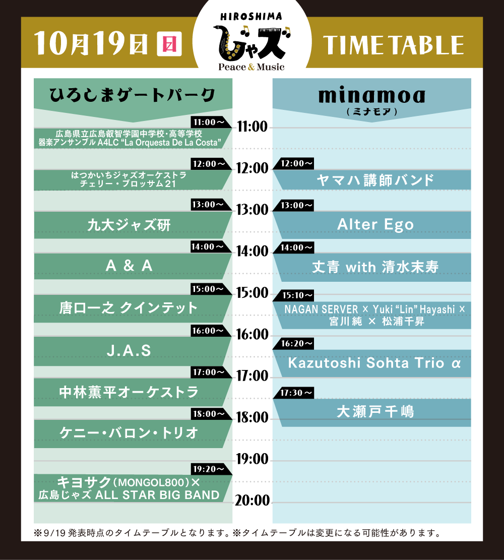 主催:広島じゃズ~Peace & Music~ 実行委員会(実行委員長:大林武司、エバンジェリスト:大瀬戸嵩)