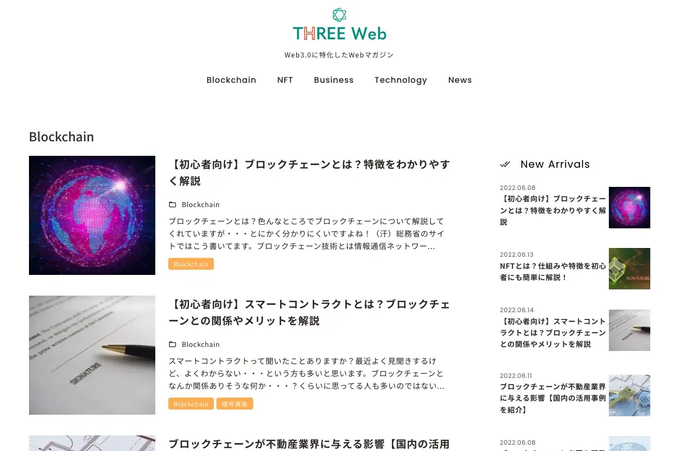 弊社のThree Webではブロックチェーン、NFT、スマートコントラクトやDeFiについてわかりやすく解説する記事や、Web3.0最新情報をお伝えする記事を毎日共有することで、Web3.0の一般社会へ浸透に貢献します。