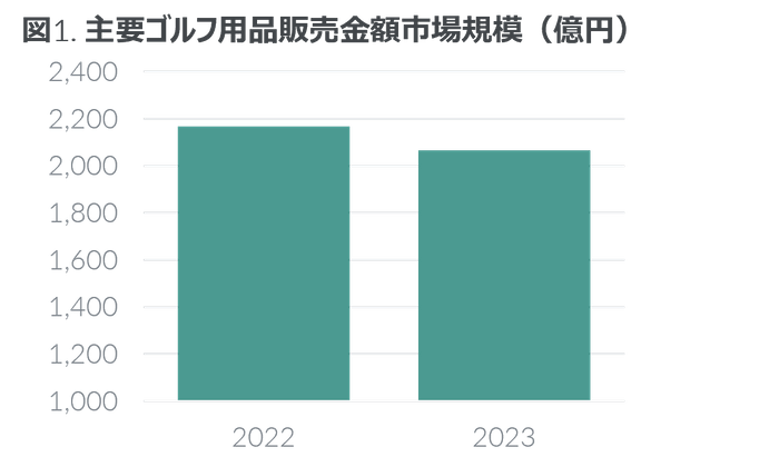 2023年の主要ゴルフ用品販売金額市場規模は、前年比4.7%減となった(図1)。