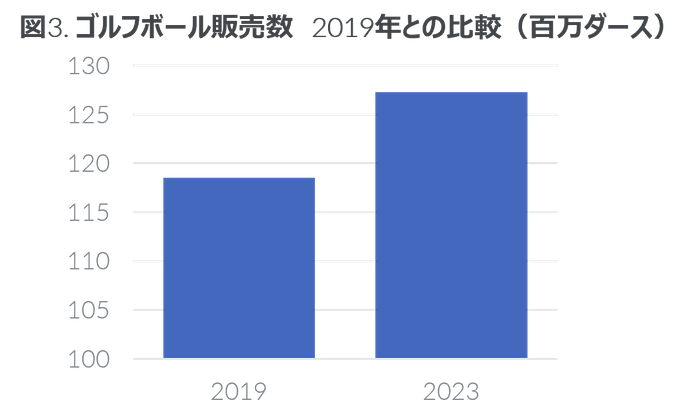 ・ゴルフボールについても前年を下回ったが、コロナ禍以前の2019年と比べると増加となった。