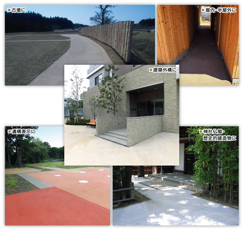 はっきりとしたエンジ系の発色で、歩道や遺構表示にも適しています。