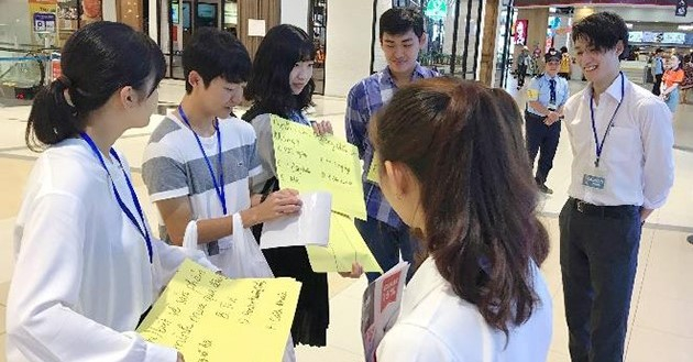 近畿大学生16人、帝京大学生16人の合計32人が混合で8つのグループを形成し、現地のホーチミン市経済金融大学の学生と協力して、ホーチミン市での市場視察やアンケート調査等を行い、「アースノーマット」のベトナムにおけるシェア拡大および市場開拓というミッションに挑戦しています。