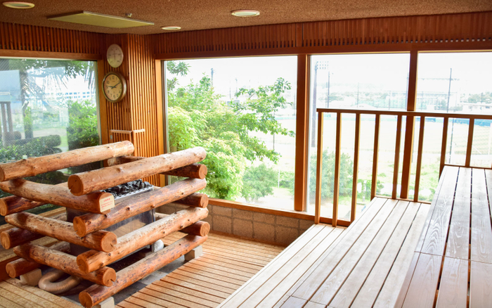 5階岩盤浴スペースに併設される「ビューサウナ」は、72℃の低めの温度でゆったりとリラックスできるサウナです。
