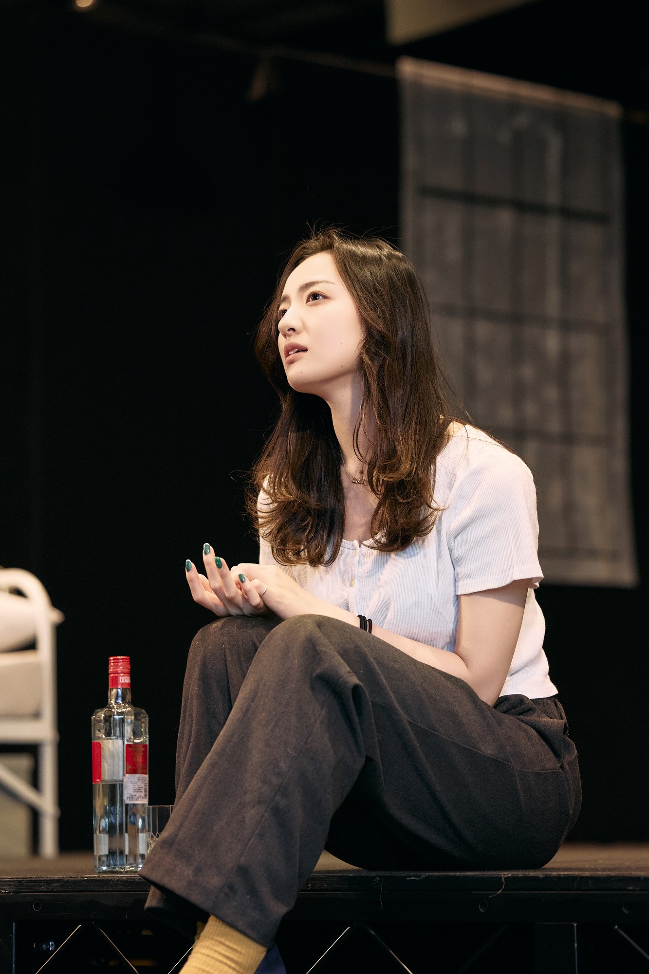 松岡が何かを追い求めるように天に右手を伸ばしたラスト。ボウイがそこに降りてきたように感じた。じっと演技を見つめていた白井氏は松岡に「ゆっくり、ゆっくり」と声をかけ、余韻を残したまま最後のシーンが静かに閉じていった。静寂が広がった稽古場に「ふーっ」と松岡が呼吸する音が広がっていた。「15分休憩」の声がかかり、他の演者が水分を補給するなど舞台から離れていく中、松岡は自分と対話するようにジッと天を見つめていた。
