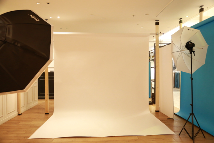 一方、QnNeは、スタジオ内をカメラと三脚を持って自由に移動することができ、白、ピンク、黄色、青などカラーの背景を選び撮影できます。
