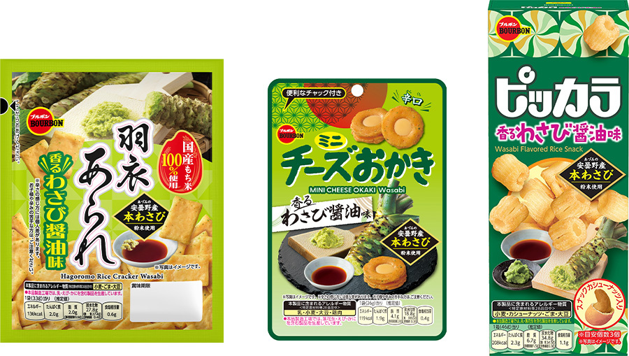 ブルボン、わさびと醤油で和を感じる、親しみやすい味わい 「羽衣あられ香るわさび醤油味」など3品を 4月7日(火)に期間限定で新発売!