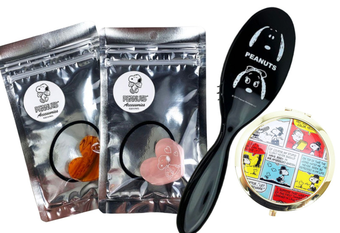 新商品のスヌーピーのヘアゴムや、ブラシ、コンパクトミラーをご紹介しました。シンプルなのでオフィスでも浮くことなく使えるキュートなヘアゴムは、オススメアイテムです。