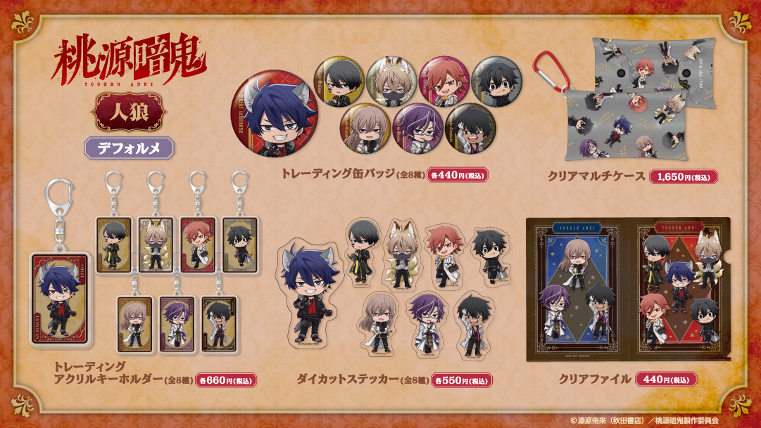 「人狼」をコンセプトに、このイベントのために新規で描き起こされた8体のイラストを使用した商品が新登場!さらに人狼シリーズのデフォルメイラスト商品も!