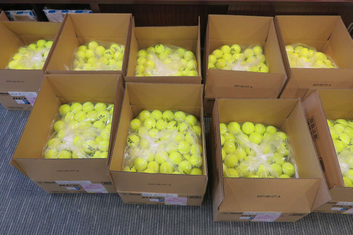 ・テニススクールにテニスボールを納品する際、お客様のご要望に応じて、ペット容器に入れず箱詰めのみの簡易包装で納品しています。また、一部商品では工場出荷時からペット容器に入れず箱詰めの状態で出荷しています※3。スクール側は、手間のかかる開缶作業と、開缶時に出る廃棄物(容器・ふた)の処理が不要となります。