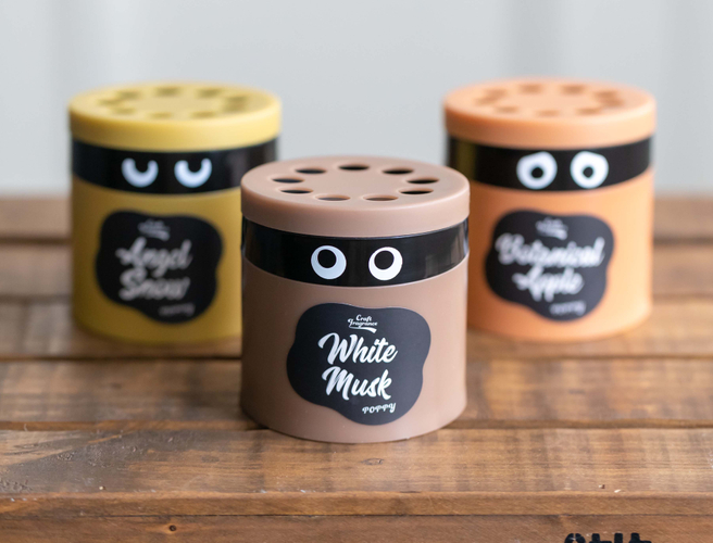 今回発売のウィズはフレグランスの妖精が容器から覗いている、キャラクター性を持たせた自動車用芳香剤です。