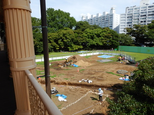旧岩崎邸庭園では、岩崎家が過ごした往時の芝庭に復元するため、茅町本邸内実測図(大正6年)を基に工事を実施しております。