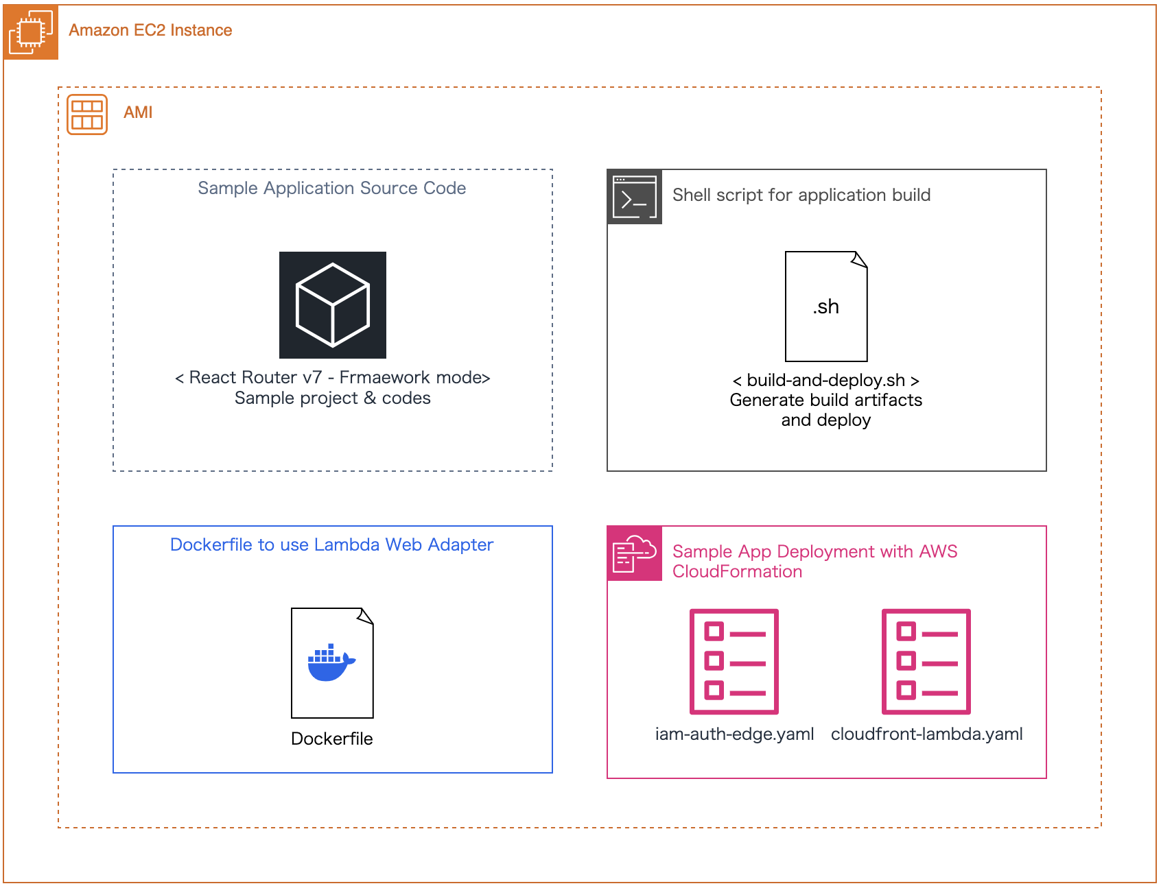 本カタログは本番環境に対応したサーバーレスアプリケーションの構築を支援するためのSandbox環境を提供します。AWS Marketplace からAMIとして配信しており、以下のような、サーバーレスアプリケーションを構築・運用する上で必要となるコンポーネントがすべて含まれています。