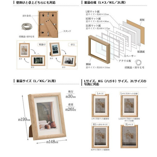 ・フォトフレーム Arco(アルコ)L/KG(ハガキ)/2Lサイズ