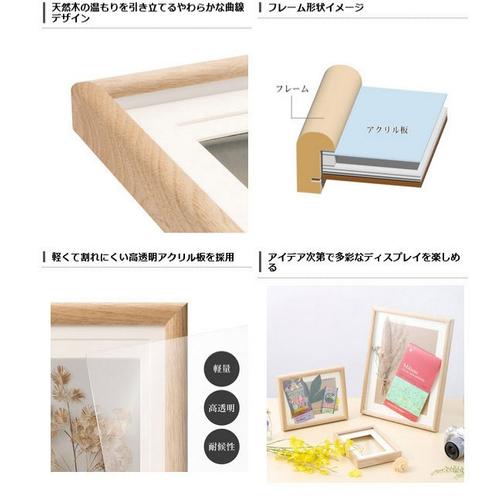 奥行きを活かして、写真と一緒にチケットの半券やキーホルダーなどの思い出のアイテムを飾ったり、ドライフラワーや雑貨小物等の立体物を中に飾ってディスプレイBOXのように使用したりすることもできます。マット紙を抜けば最大11mmの厚みまで額装できます。