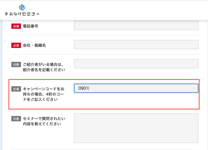 ウェビナー申込の際にキャンペーンコードを登録ください。