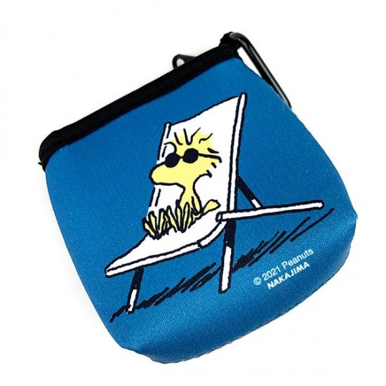 ベーシックなネイビーカラーは、寝そべりポーズのスヌーピーデザインです。ポーチ裏面のプレートをくわえたスヌーピーも、もはやおなじみですよね♪