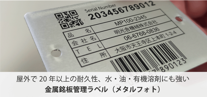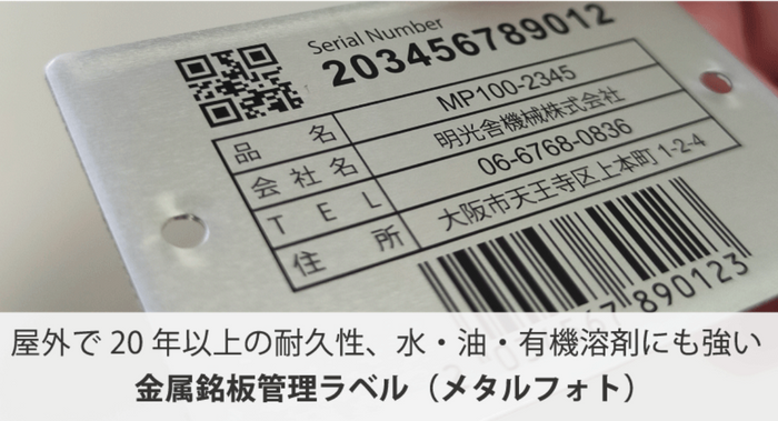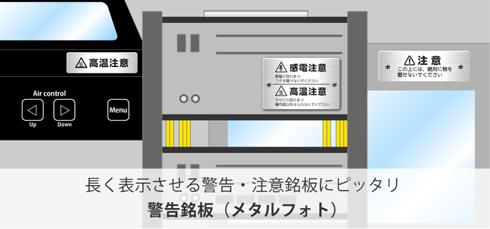 銘板制作を誰でも簡単に【銘板制作屋さん】より小ロットにお求めやすく。バーコード銘板、警告銘板、タイトル銘板、操作パネルなどを小ロットで制作します。明確な料金表示で便利なセミオーダー商品も。屋外で20年以上の耐久性、水・油・有機溶剤にも強いメタルフォト商品も取り扱っています