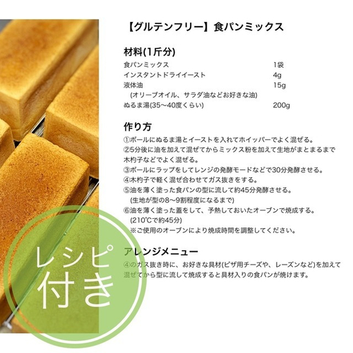 種類  :米粉成形パンミックス、米粉食パンミックス