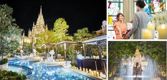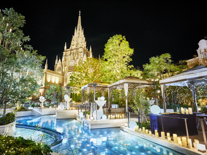 会場は名古屋駅からアクセスが良く、イルミネーションが施された自然あふれる中庭とそこに佇む大聖堂が、都心の喧騒を忘れさせてくれるプライベート空間に。一生の記念に残る最高級のプロポーズを叶えていただけます。