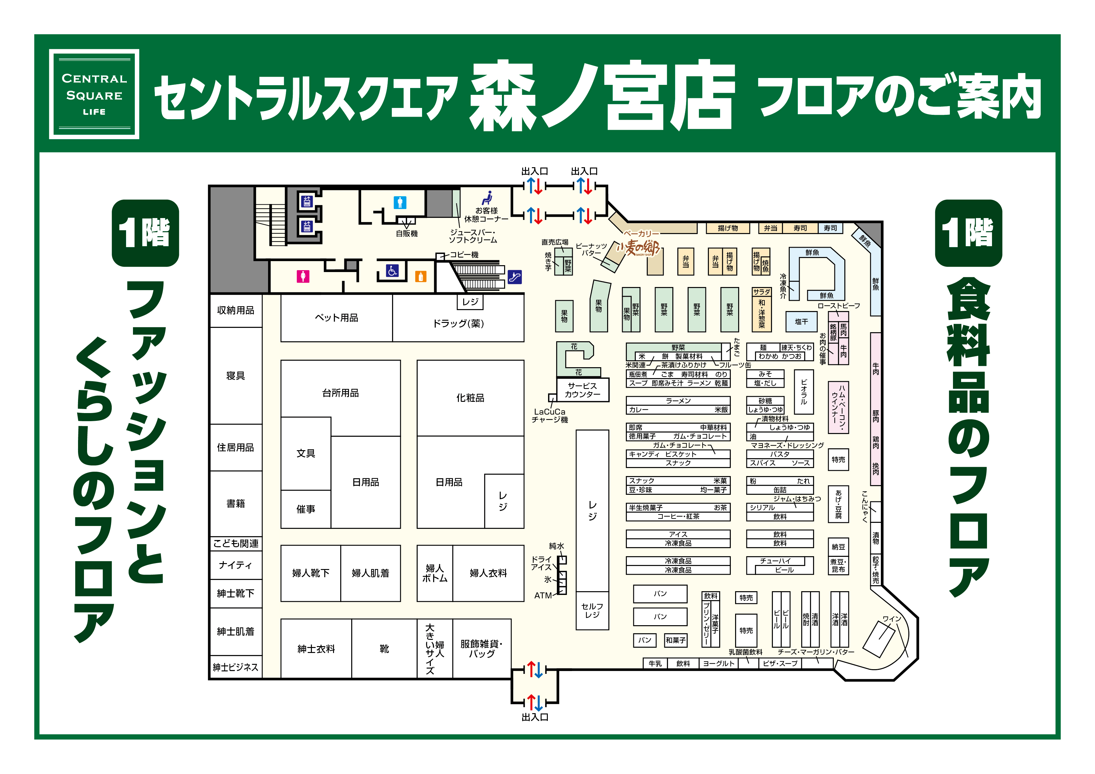 今回の改装では、セントラルスクエアならではの味も見た目もご満足いただけるライフ自慢の新商品が続々登場いたします。また、店内のレイアウトを変更し、よりお買い物しやすい売り場にリニューアルいたします。