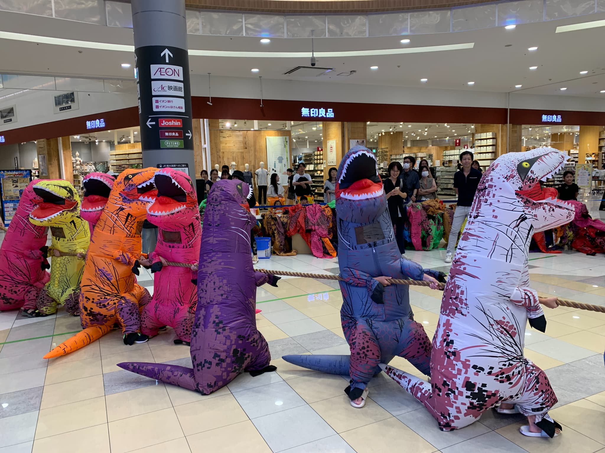 イオンタウン吉川美南にて、「ティラノサウルスのエアコスでがんばれ綱引き&だるまさんが転んだ」を開催します。