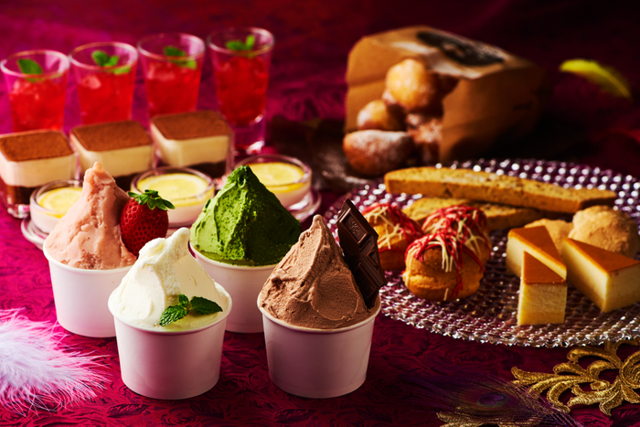必ずお召し上がりいただきたい今回のメニューは、ひとつひとつホテルでつくる「ジェラート」。ミルク、イチゴ、チョコレート、抹茶の4種類をご用意いたします。どれもオーソドックスなテイストですが、そのこだわりはレシピにあります。アジア初のジェラート世界チャンピオンである柴野大造氏監修のもと、濃厚ながら繊細な味わいを実現。ぜひ全種類の味をコンプリートしていただきたい、ディナーブッフェおすすめの一品です。