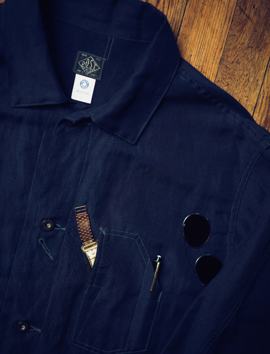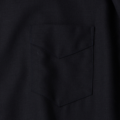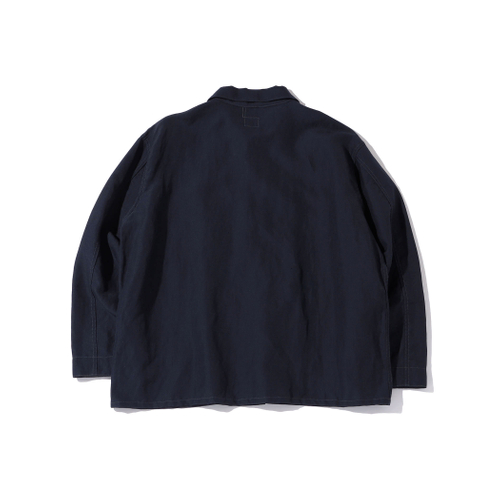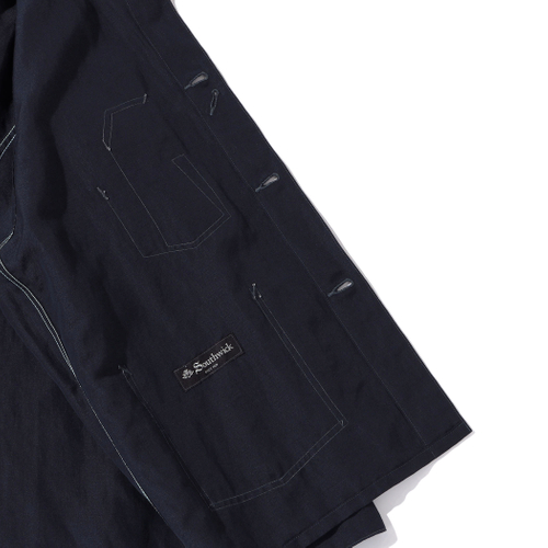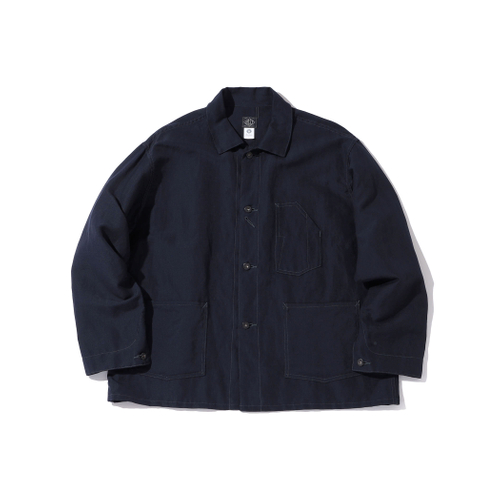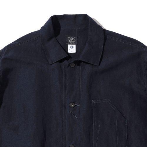 素材にはウール×リネンの斜子織(ホップサック生地)を採用し、深みのあるネイビーカラーで仕上げました。ワークウェアらしい意匠を尊重しながらも、日常使いしやすい上質な一着として昇華。Gジャンのようなカジュアルなレイヤードスタイルから、タイドアップしてブレザー感覚で着用する上品なコーディネートまで、多様な着こなしに対応します。