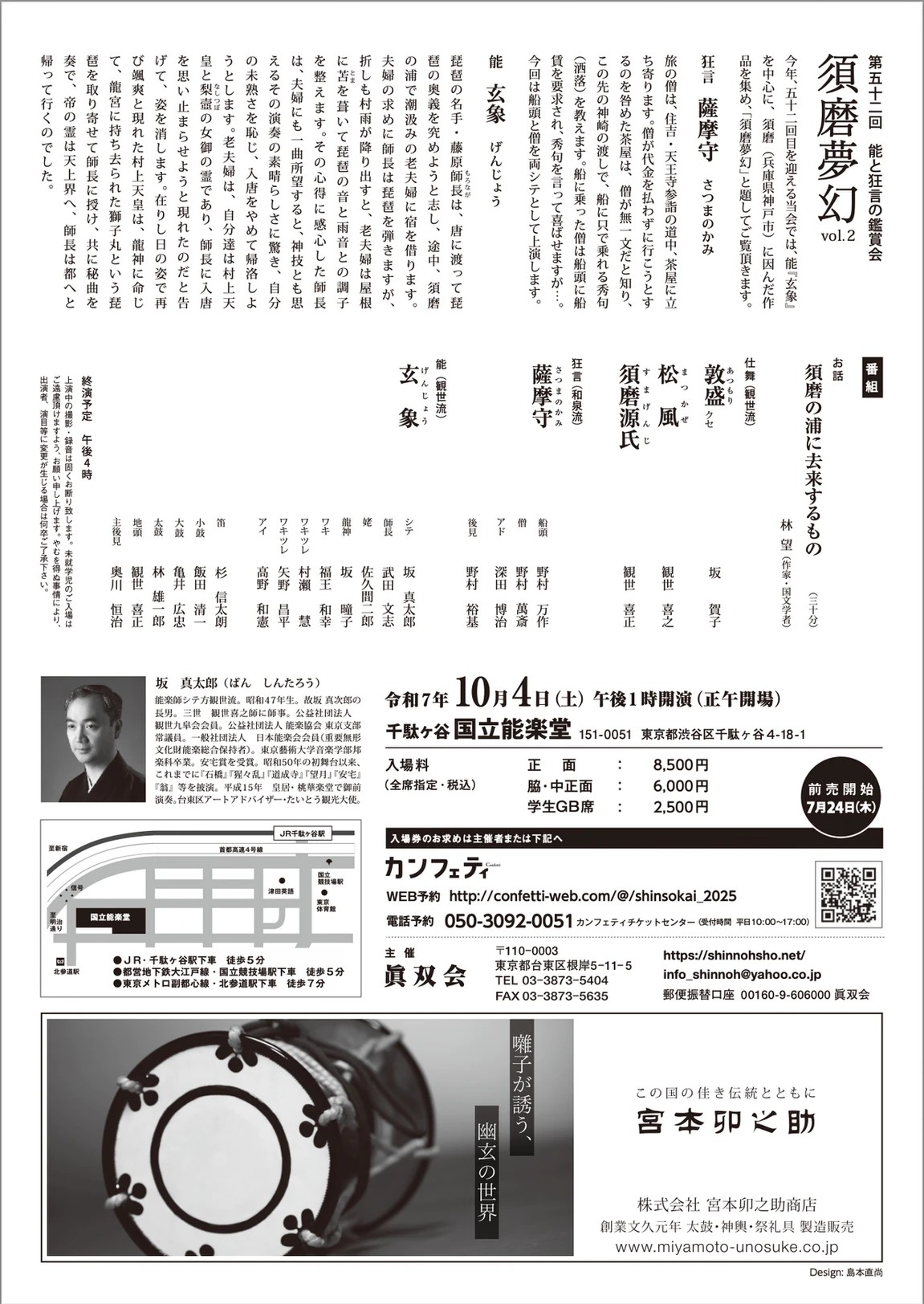 『第52回 能と狂言の鑑賞会 -須磨夢幻vol.2-』