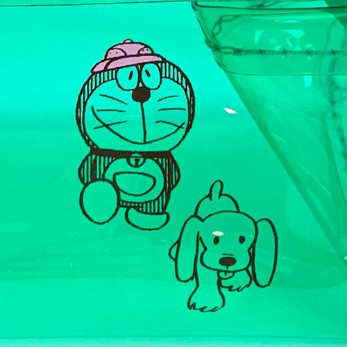 ドラえもんとペコ。ゆったりお散歩しているようでリラックス感がありますね。