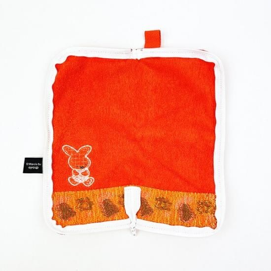 ミッフィーファンなら一度は必ず目にしたことであろうミッフィーのナインチェデザインです。ナインチェ」はオランダで呼ばれているミッフィーのことを指しており、ナインチェデザインはミッフィーの初期のデザインです。このアイテムではミッフィーの70周年を記念して初期のデザインが復活したちょっとレアなデザインです。「喜び」や「楽しさ」を表すブルーナカラーのレッドの生地に、初めて描かれた当時のミッフィーのアップリケが入ったシンプルで愛らしさ抜群なデザインです。