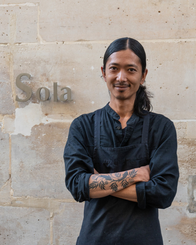 東京、ロンドン、パリにて経験を積む。2018年よりパリ5区にあるrestaurant Sola のシェフに就任。2019年ミシュランガイドの一つ星を獲得。2020年のコロナ禍に独学で陶芸を開始し、陶芸家としてパリでの個展の開催やParis design week の一環として行われるデザインの見本市maison et objet でのトークイベント登壇などの活動を行っている。Solaではレストランで出る廃棄物( 炭の灰や鳩の骨)などを利用し制作した器で料理を提供するなど"食事"を超えた"expérience totale "の提供を目指す。またサスティナブルなレストランの評価基準のひとつ "ecotable " において日本人ミシュランスターシェフとして初のラベルを獲得するなど持続可能性を意識した取り組みに挑戦している