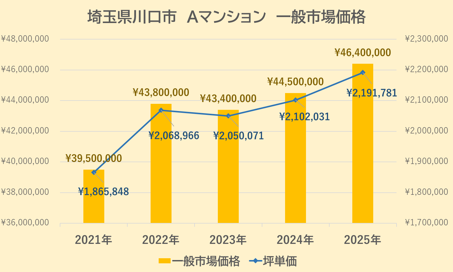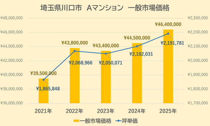 Aマンションの一般市場価格・坪単価の推移は上記【図3】の通りです。