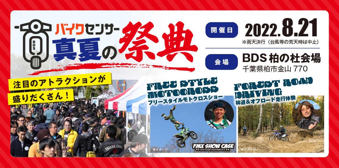 ライダーのみならず、どなたでも楽しめる内容となっておりますので、8月21日(日)はぜひとも「BDSバイクセンサー 真夏の祭典」にお立ち寄りください。
