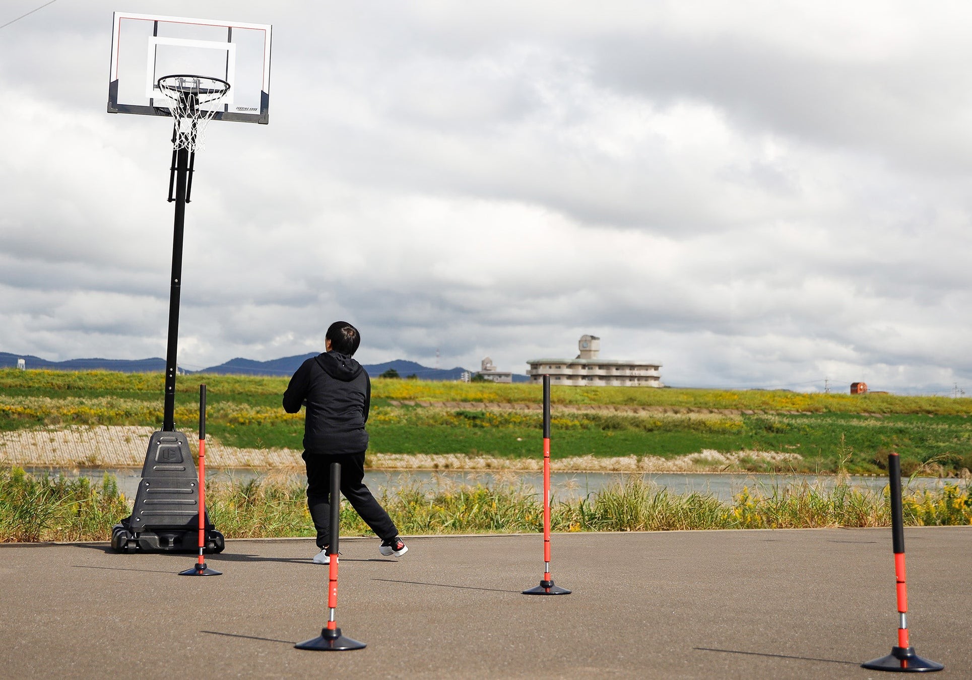 ポール下部のスプリング(バネ)が生み出す揺れは、「動く相手」を意識した実践的なトレーニングを可能にします。フェイントで逆を突くドリブル練習や、素早い動きに対するブロック練習など、工夫次第で実戦に直結する多様なトレーニングが可能です。