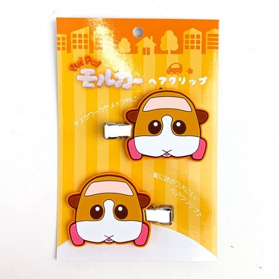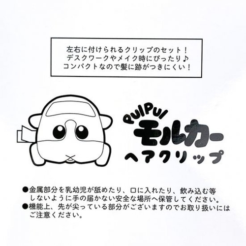 今回ご紹介するモルカーのヘアクリップは2種類。ひとつめは白いボディが特徴のシロモです♪泣いてるお顔が愛らしい可愛いキャラクターですよね~!(怒られますか?)モルカーのヘアクリップは2個入りで左右に付けられてとっても便利☆