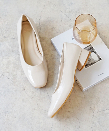 甲が深いデザインで、シンプルな中にもこだわり感が漂います。三角形のヒールが個性を出すポイント。