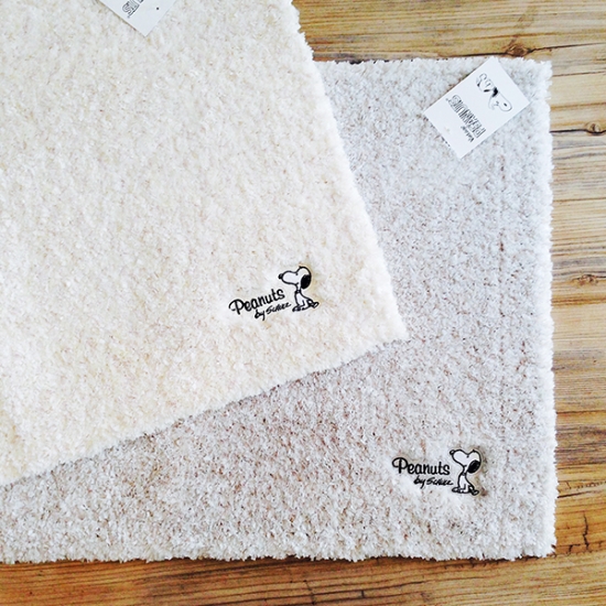 かわいいスヌーピーを足で踏むのは少し気が引けるなんていう優しい人にもおすすめの、スヌーピーのワンポイントがついたバスマット♪
