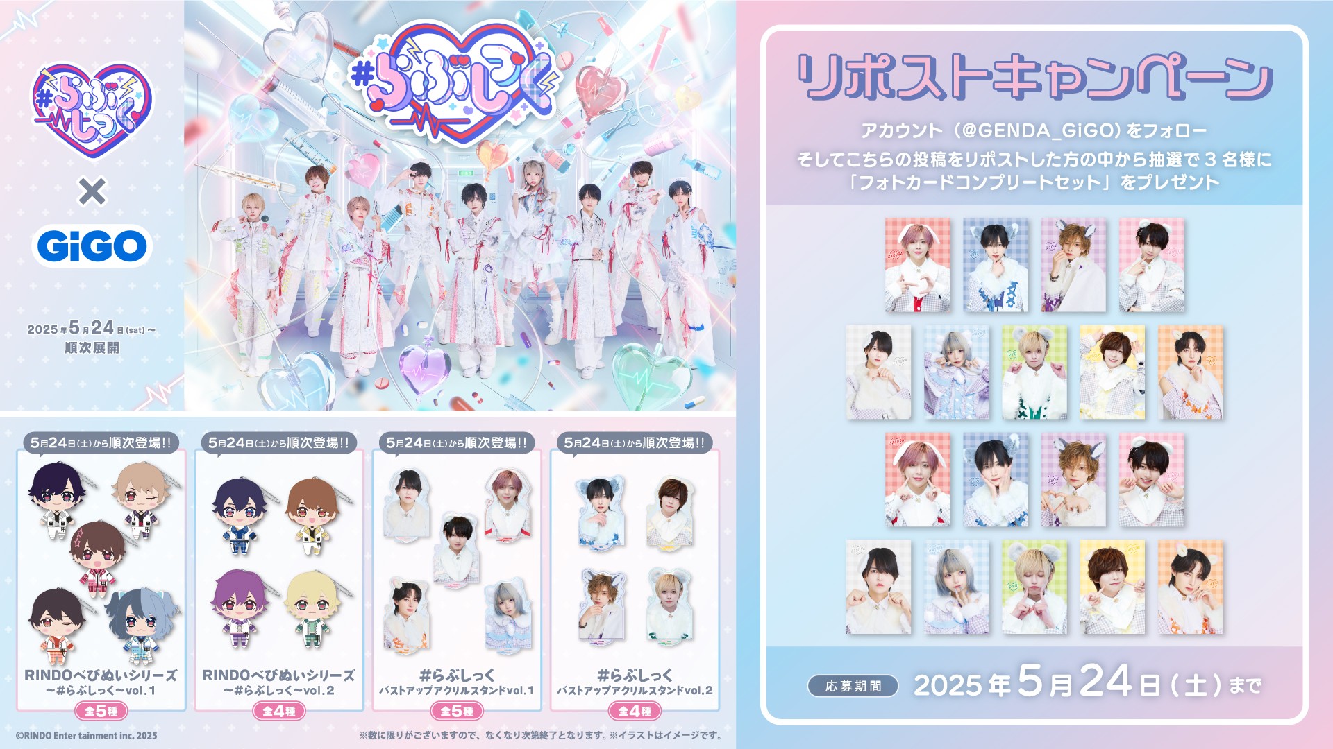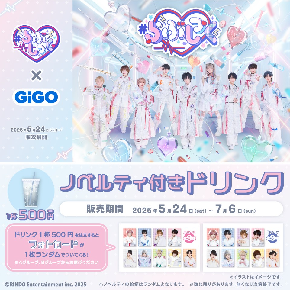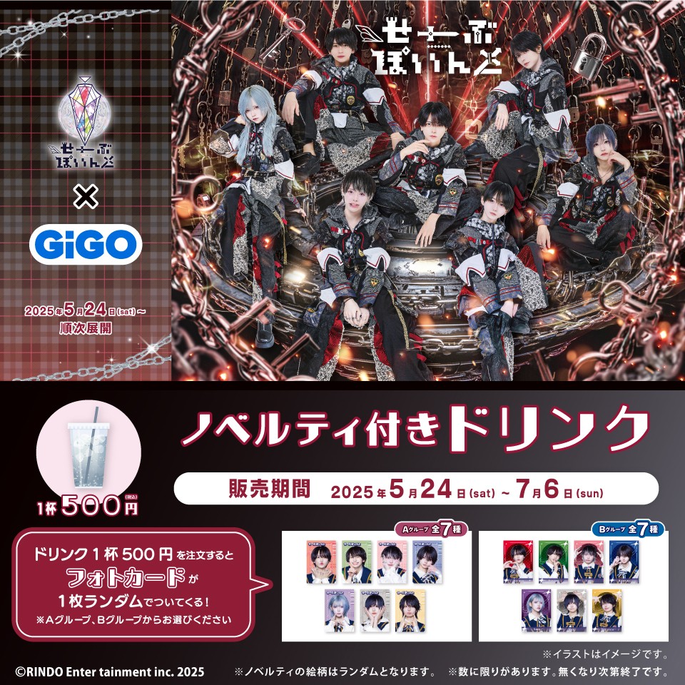 株式会社GENDA GiGO Entertainment(本社:東京都港区 代表取締役社長:二宮 一浩 以下、「当社」)は、GiGOグループのお店におきまして2025年5月24日(土)より、「夢喰NEON」を筆頭に「#らぶしっく」、「XP!A」など今話題の人気男性アイドルグループが所属する「RINDO Entertainment」とのコラボを実施いたします。