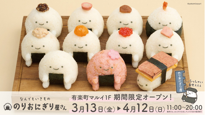 「なんでもいきもの のりおにぎり屋さん」の魅力的なグッズが、有楽町マルイに期間限定ショップとして登場!3月13日(金)から4月12日(日)まで、1階特設エリアにて、メイクパフシリーズをはじめとする様々な「なんでもいきもの」のりおにぎりグッズを販売いたします。