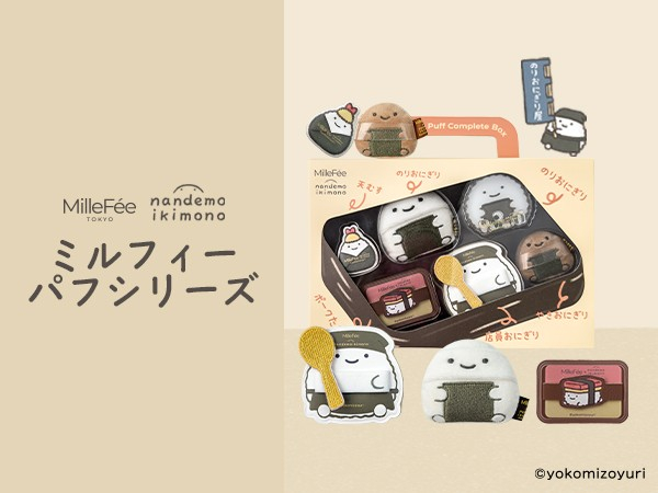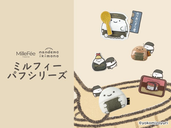 MilleFée(ミルフィー)で人気のパフシリーズから、よこみぞゆりさんによる「なんでもいきもの」シリーズのおにぎりデザインが登場。