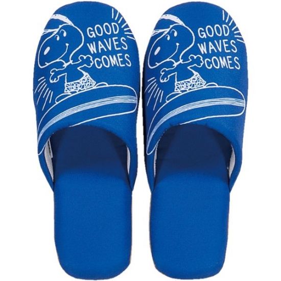 深いブルーが鮮やかな、サーフィンデザインのスヌーピースリッパです。ブルー地にホワイトで描かれたスヌーピーが、爽やか♪サイズはフリーサイズなので、男女兼用で使えます。